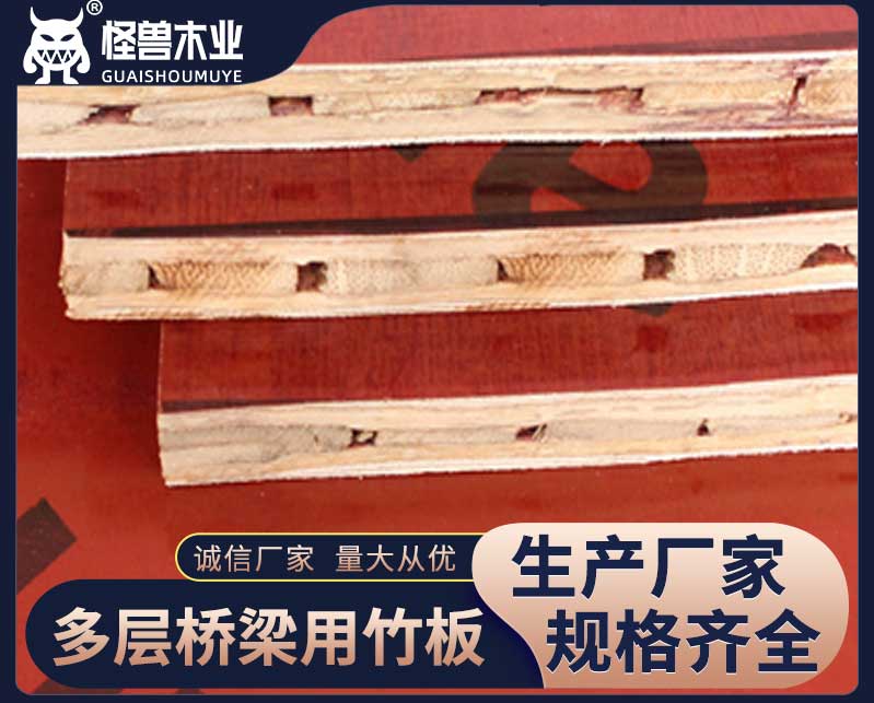 怪獸木業(yè)供應:多層橋梁用竹板橋梁模板工廠批發(fā)橋梁用竹膠板韌性佳 可彎曲 長期供應。怪獸木業(yè)竹膠板銷往全國各地,深受用戶青睞!
