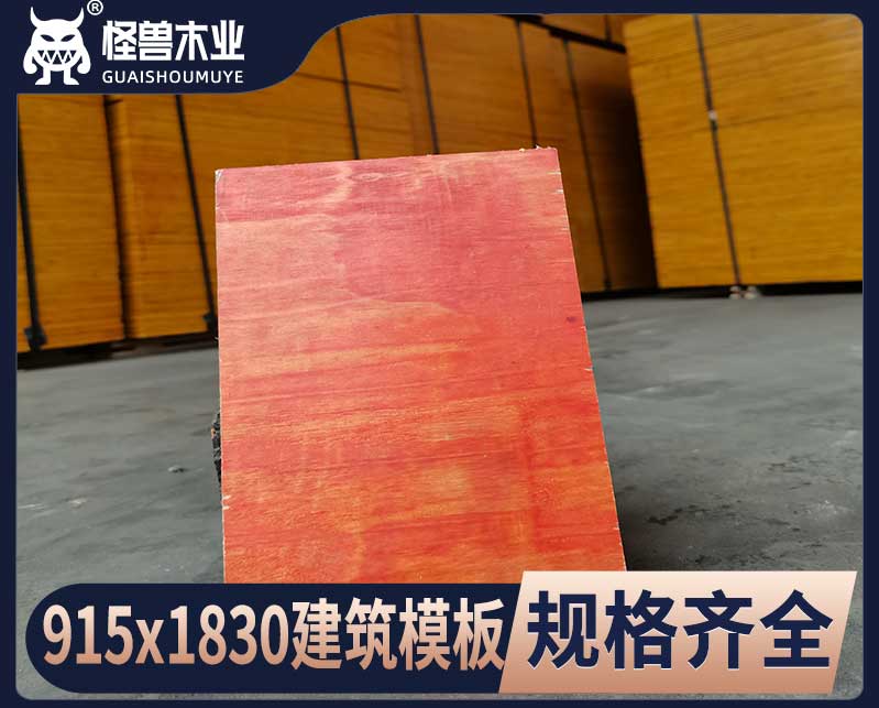 915×1830建筑模板:工程項目上用的建筑模板一般規格都是915mm*1830mm,廣西貴港區域1830*915*(08.5-17)mm的建筑模板,是廣西木模板廠家黑豹木業主要生產的的產品。怪獸木業是一家實力相當強的建筑木模板廠家,公司日產50000張木模板,模板以桉木材質為主。